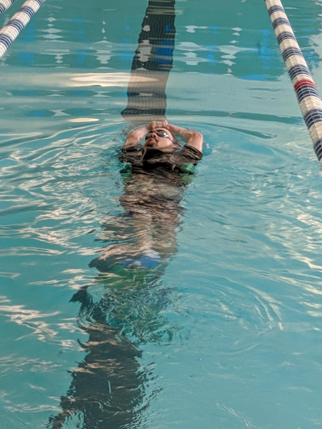 Today I swam another 700 yds in my workout today! I worked more intensively on my newly adapted back stroke for 400 yds! I am definitely starting to master the ability of getting more rotation in my shoulders during my back stroke. This will not only help me during swimming, but also with everyday activities such as walking around and feeding myself! I highly recommend that you try to work on your back stroke when you swim, it might be challenging at first, but when you start to master the stroke, your body will and muscles will feel amazing! It’s taken me years of practice and hard work to be capable of doing my current back stroke, so don’t get discouraged or frustrated if you have trouble with it at the beginning…. Practice makes perfect! Working on your back stroke is also an intense workout for your glute and thigh muscles, which are the main muscles that help you walk! Looking forward to the final day of my intensive program tomorrow! I need to swim 600 yds to reach my 3 mile goal! Wish me luck!
